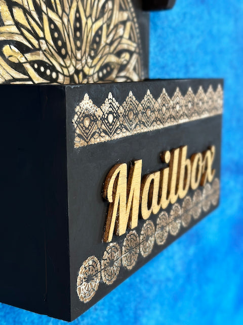 Black and Gold Wood Letter Box with Shelve
